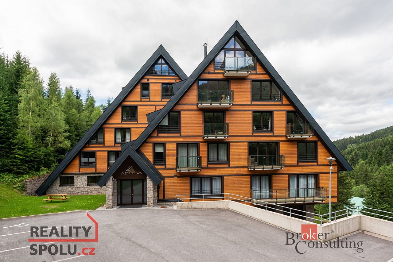 Prostorné apartmá až pro 6 osob – ideálně 4 dospělé osoby a dvě menší děti, či jedno větší dítě, je umístěn ve 2. nadzemním podlaží apartmánového domu, přístupný výtahem či po schodišti.